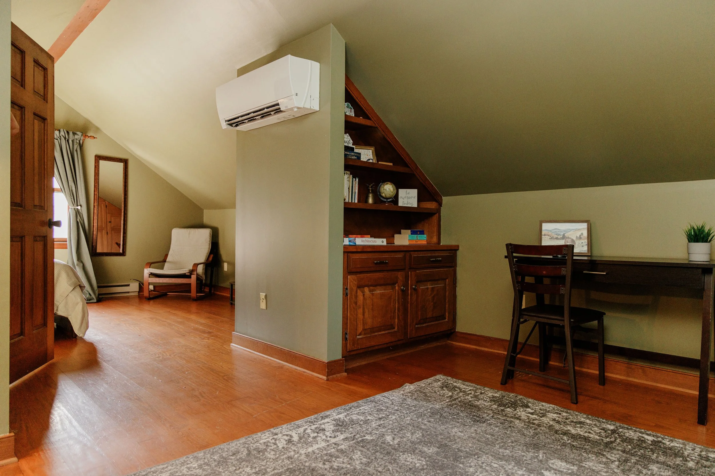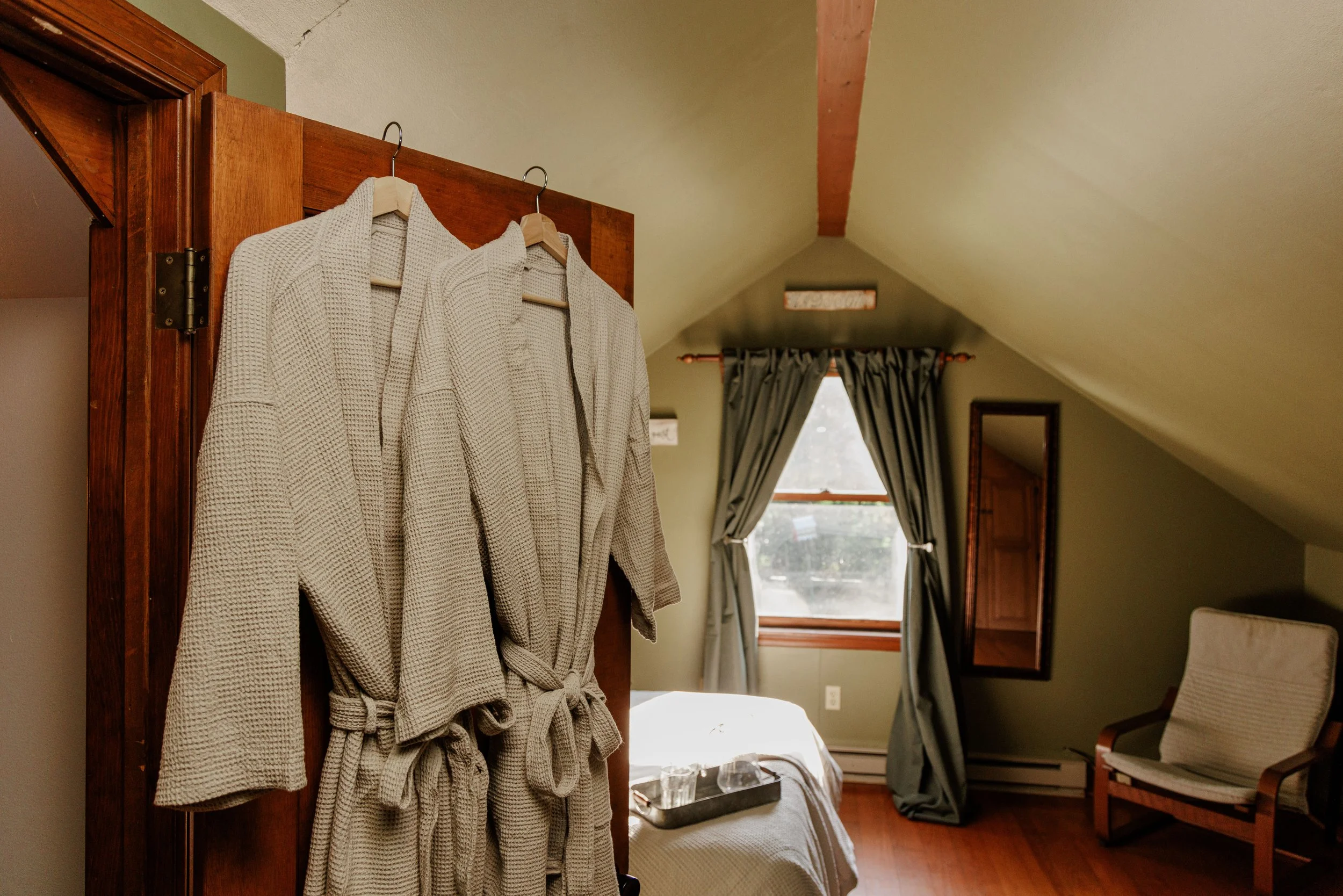 Our guest suite is well equipped for your stay at Montlaurel. Featuring a full bathroom, kitchenette, mini fridge, microwave, coffee maker, designated heating and cooling, fresh linens, cookplate, dishes, TV, ample seating, and much more, this space is ready for a relaxing weekend of celebration and being close to nature. We provide tea, coffee, sugar, and powdered creamer and basic cooking supplies. This suite is an apartment above the garage of the main house at Montlaurel with private access. Our guest suite is also pet friendly! Our suite is available for stays year round, not just for wedding weekends, please see booking link above to book through Airbnb,